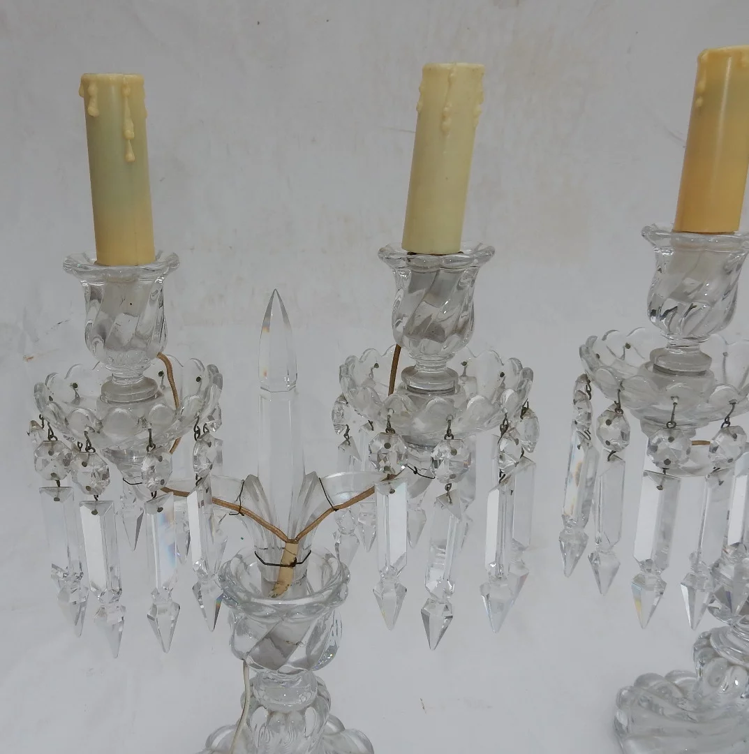 1950′ Pair of Baccarat Electrified Candlesticks Tors Model, Signed Cachet Baccarat