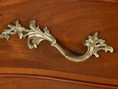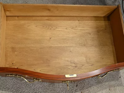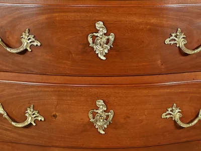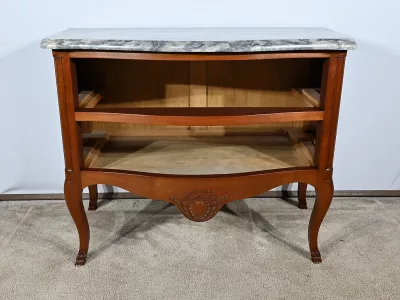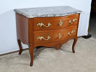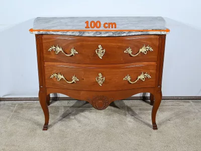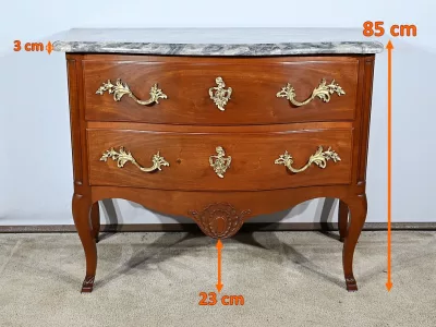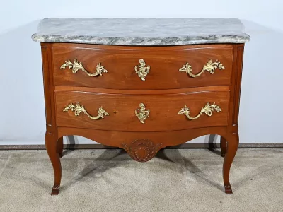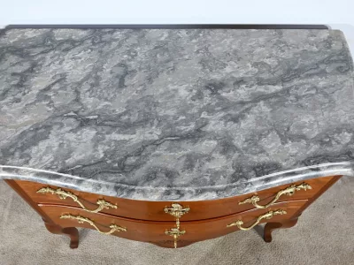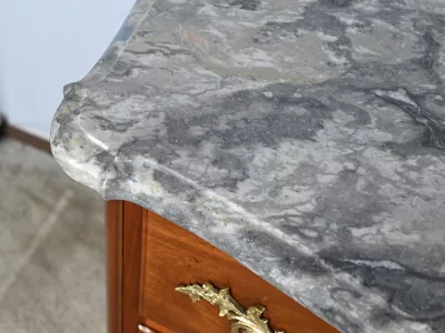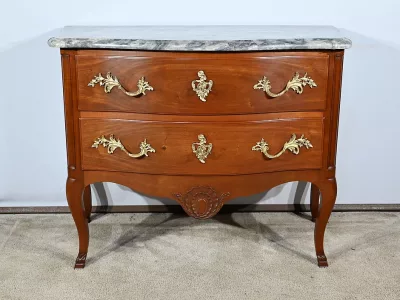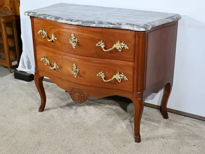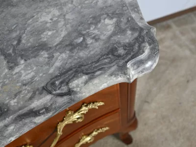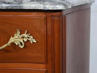 Kommode aus Mahagoni im Stil Louis XV aus dem späten 19. Jahrhundert aus dem Hafen von Bordeaux. Zwei Schubladen mit Griffen aus vergoldeter Bronze und Originalschlössern mit späterem Schlüssel. Platte aus grauem Marmor. In unserer Werkstatt restauriert und in ausgezeichnetem Zustand. Wachsoberfläche. Kontaktieren Sie uns für die Lieferung. Referenz: 050424.4
