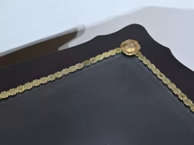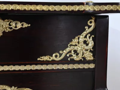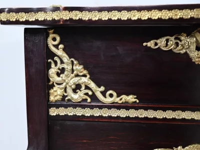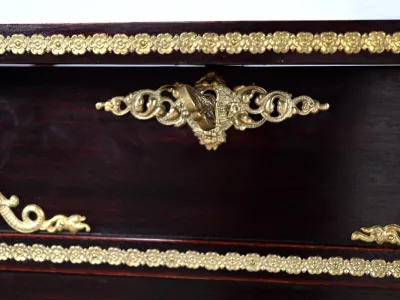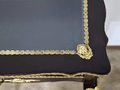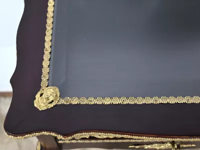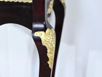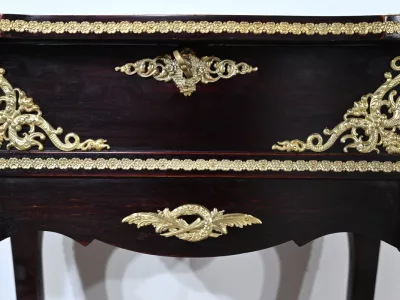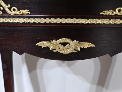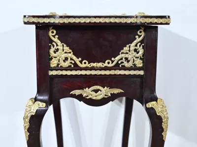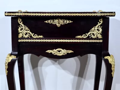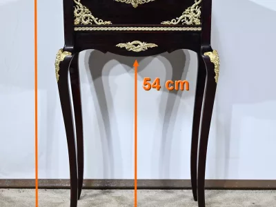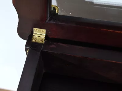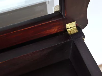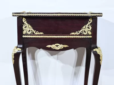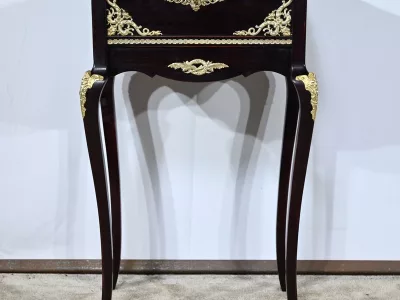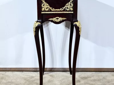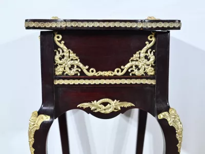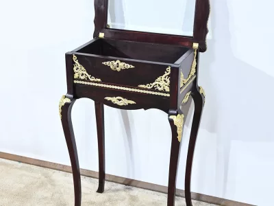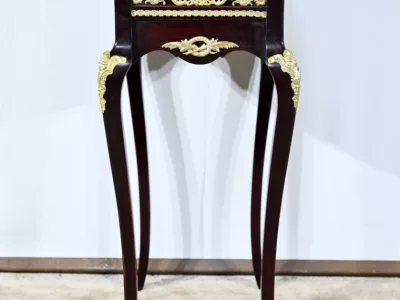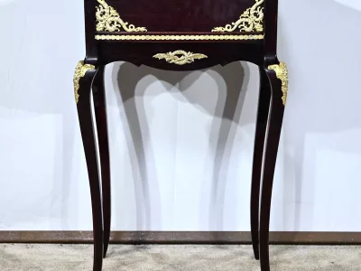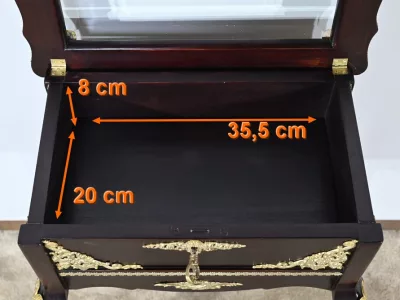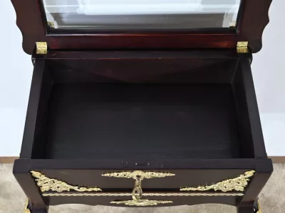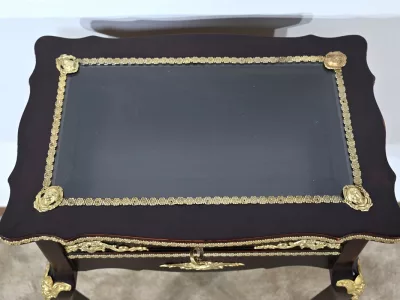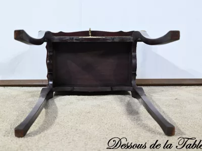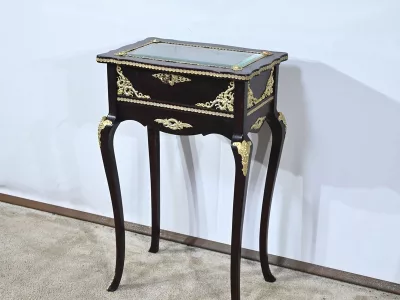 Kleiner Ausstellungstisch im Louis XV-Stil aus gebeiztem Mahagoni mit abgeschrägter Glasplatte. Originalschloss und -schlüssel. Mitte des 19. Jahrhunderts. Ausgezeichneter Zustand. Wachsfinish auf harter Oberfläche. Kontaktieren Sie uns für die Lieferung. Referenz: 090424.3