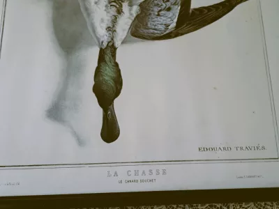 Druck einer Ente nach Edouard Travies. Mit Rahmen: 68 x 53 cm. Ansicht: 64 x 49 cm.