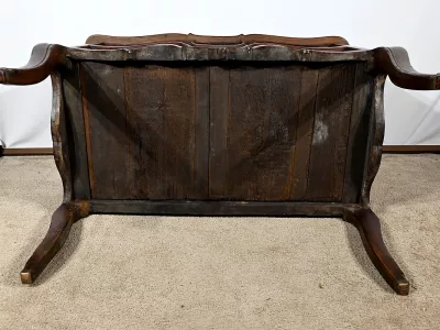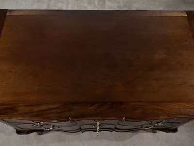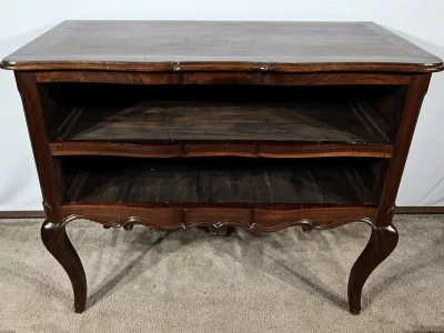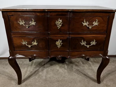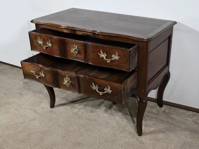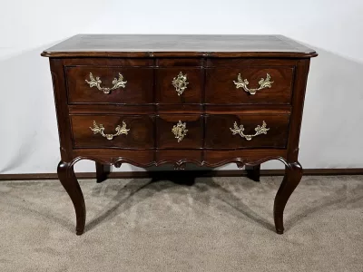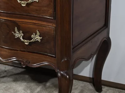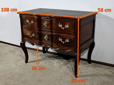 Kommode „Sauteuse“ aus der Zeit Ludwigs XV. aus Amaranth und Mahagoni mit geformter Front. Zwei große Schubladen mit Bronzegriffen und Schlüssellöchern. Originalschloss mit späterem Schlüssel. In unserer Werkstatt restauriert und in ausgezeichnetem Zustand. Wachsoberfläche. Kontaktieren Sie uns für die Lieferung. Referenz: 110324