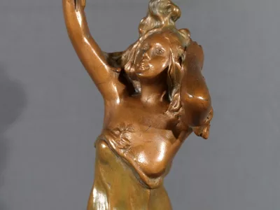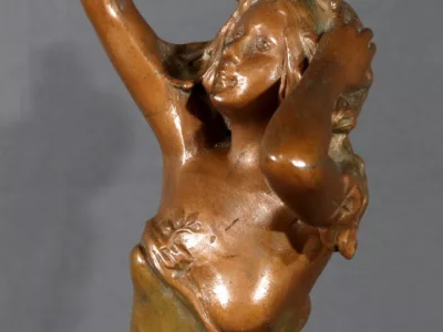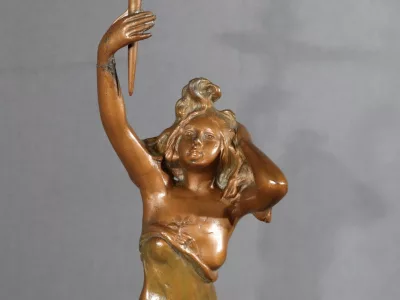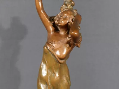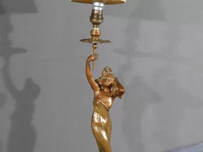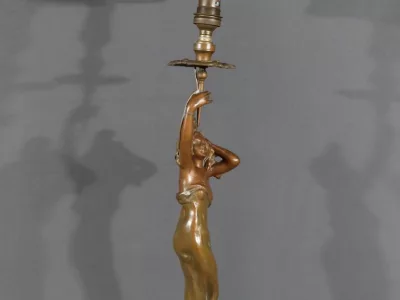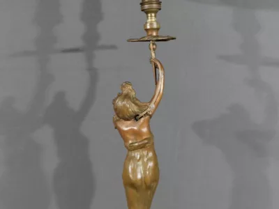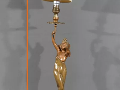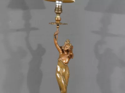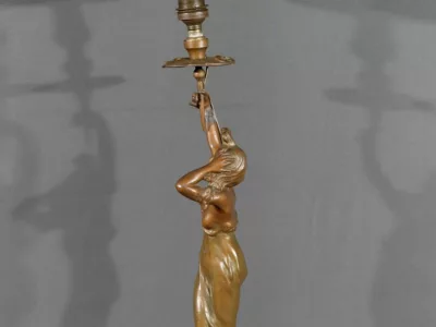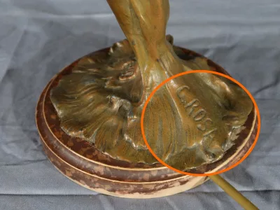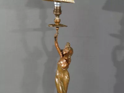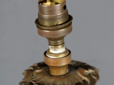 Jugendstillampe aus Zink, signiert C. ROSA. Mitte des 20. Jahrhunderts. Ausgezeichneter Zustand.