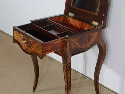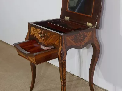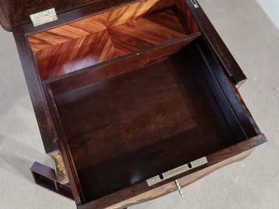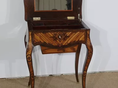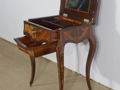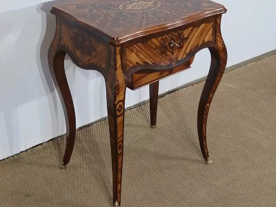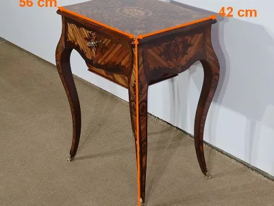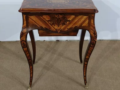 Mitte des 19. Jahrhunderts, Louis XV-Stil, Arbeitstisch mit Intarsien aus Palisander. Innenschublade und Fach. In unserer Werkstatt restauriert und in ausgezeichnetem Zustand. Kontaktieren Sie uns für die Lieferung. Referenz: 160223
