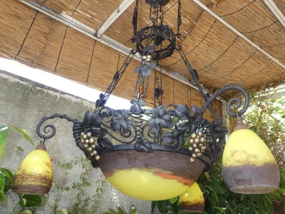 Jugendstil-Degue-Leuchte aus Schmiedeeisen, Bronze und Glas. Das Licht muss neu verkabelt werden. Referenz: 1866