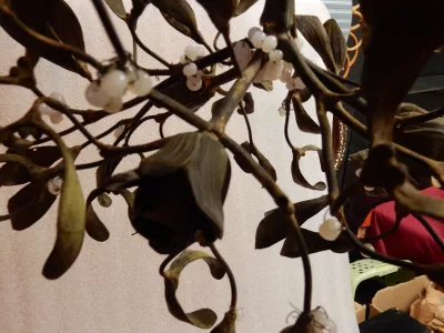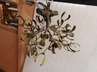 • 1900′ Art Nouveau Bronze Mistletoe Ball Chandelier with 3 Lamps Diameter 45 cm Sockets In the Shape of Tulips