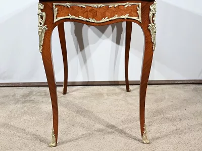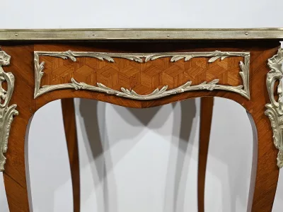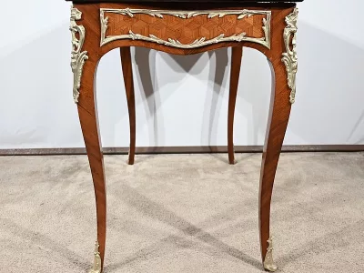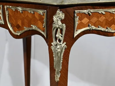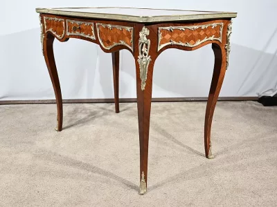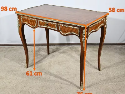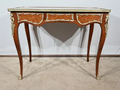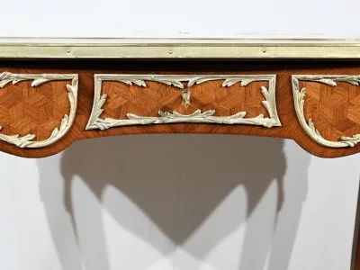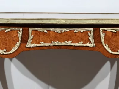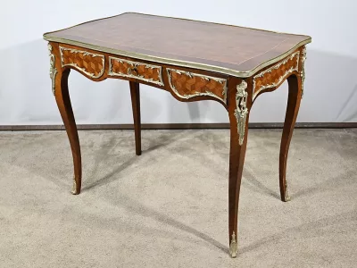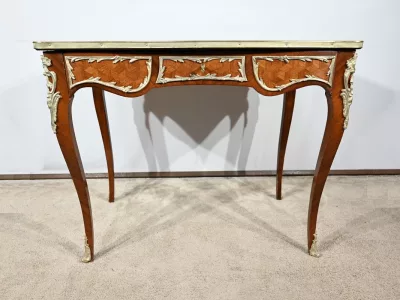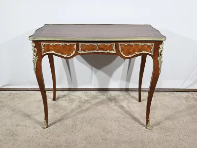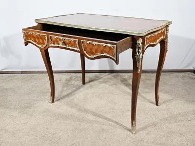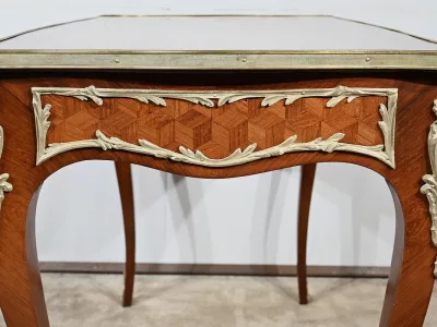 Anfang des 20. Jahrhunderts, Louis XV-Stil, Schreibtisch aus Palisanderfurnier mit Messingeinlage und Bronzedekoration. Friesschublade. In unserer Werkstatt restauriert und in ausgezeichnetem Zustand. Kontaktieren Sie uns für die Lieferung. Referenz: 220324
