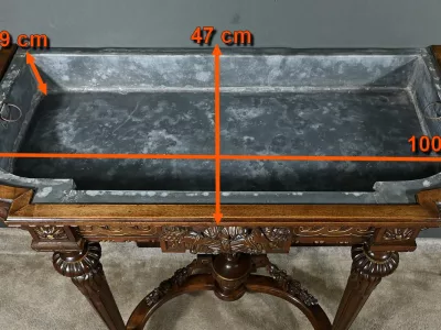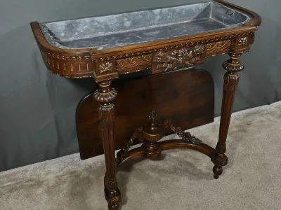 Jardiniere im Louis XVI-Stil auf Ständer aus Nussbaumholz mit abnehmbarem Deckel und Zinkverkleidung. Mitte des 19. Jahrhunderts. Restauriert in unserer Werkstatt und in ausgezeichnetem Zustand. Kontaktieren Sie uns für die Lieferung. Referenz: 250225