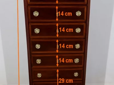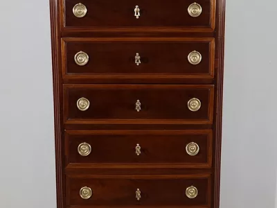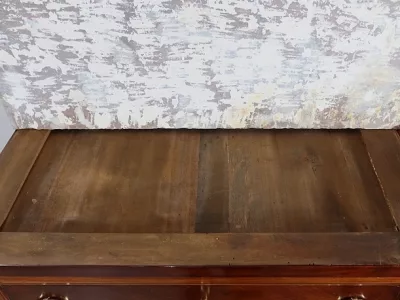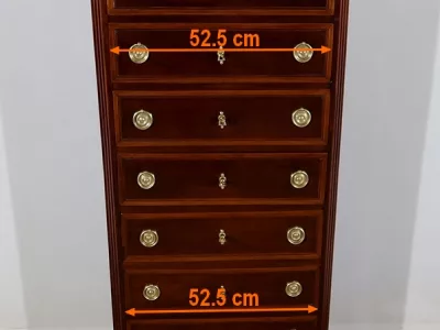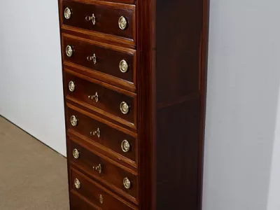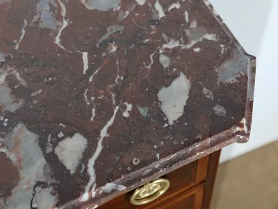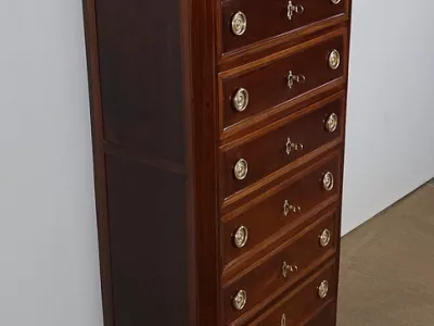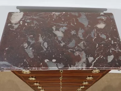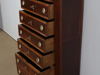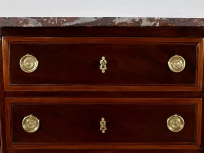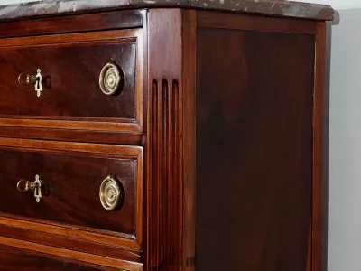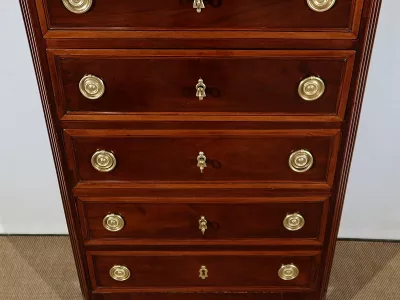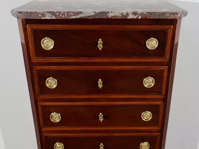 "Semainier" -Kommode aus Mahagoni aus der Zeit Louis XVI, bestehend aus fünf Schubladen im oberen Teil und einer Doppelschublade im unteren Teil. Originale rote Marmorplatte. In unserer Werkstatt restauriert und in ausgezeichnetem Zustand. Kontaktieren Sie uns für die Lieferung. Referenz: 260122