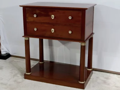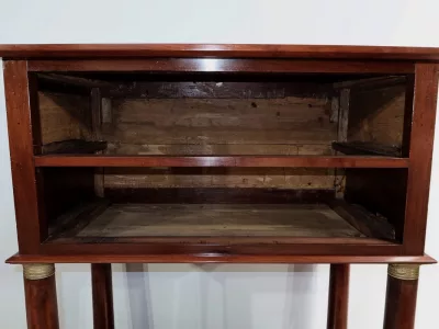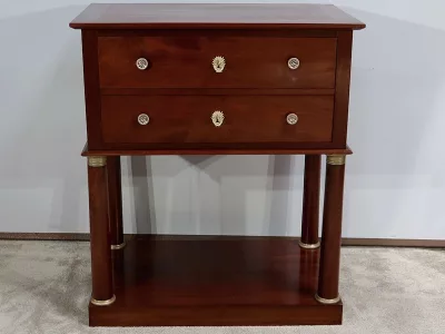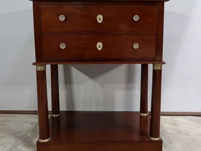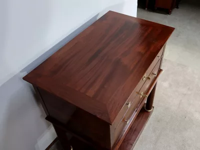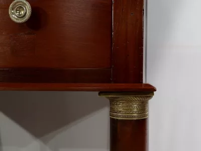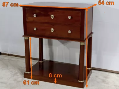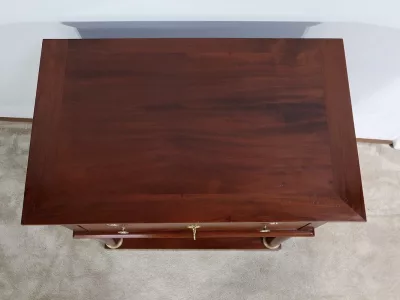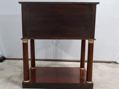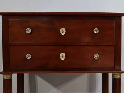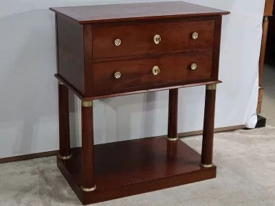 Directoire-Konsolentisch aus Mahagoni und Mahagonifurnier mit zwei Schubladenebenen. Originalschlösser mit neuen Schlüsseln. In unserer Werkstatt restauriert und in ausgezeichnetem Zustand mit einfacher Wachslackierung. Kontaktieren Sie uns für die Lieferung. Referenz: 260523.3