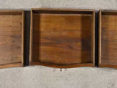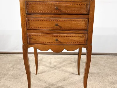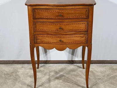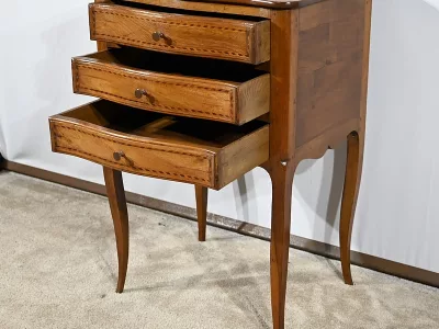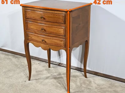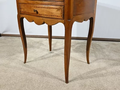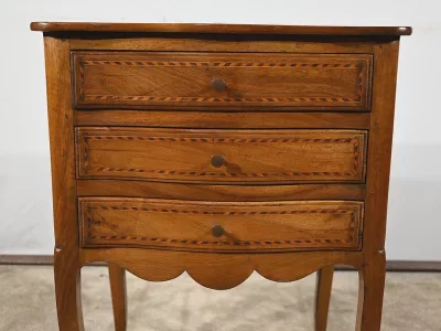 Kommode „Chiffonniere“ im Louis XV-Stil aus Nussbaumholz mit Intarsien, mit geformter Vorderseite. Ende des 19. Jahrhunderts. In unserer Werkstatt restauriert und in ausgezeichnetem Zustand mit Wachsoberfläche. Kontaktieren Sie uns für die Lieferung. Referenz: 281123.3