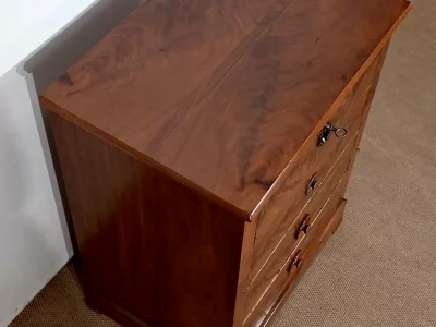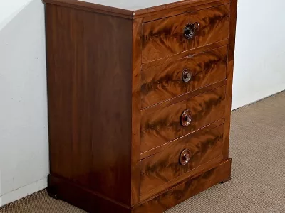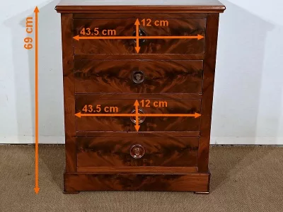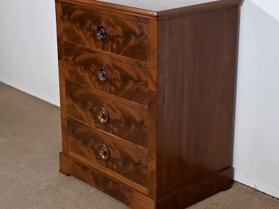 Kleine „Chiffonniere“-Kommode aus Mahagoni, bestehend aus vier Schubladen. Ende des 19. Jahrhunderts. In unserer Werkstatt restauriert und in ausgezeichnetem Zustand. Kontaktieren Sie uns für die Lieferung. Referenz: 343 U
