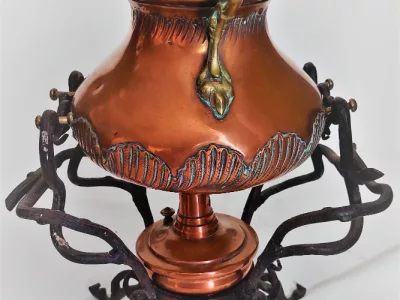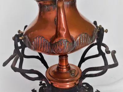Kupferkessel auf einem Jugendstilofen.