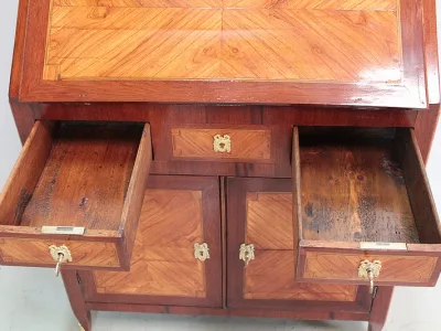 Ende 18. Jh. Bureau in Palisander-Intarsien mit Innenausstattung. In unserer Werkstatt restauriert, gestrichen und poliert. Perfekter Zustand