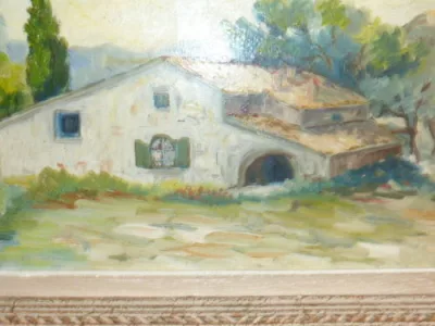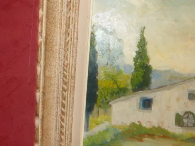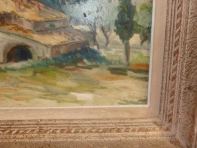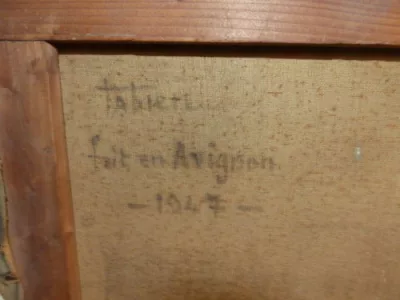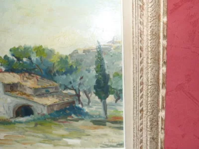 Tableau huile sur toile paysage fait en Avignon (signé Fabien 1947)