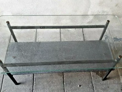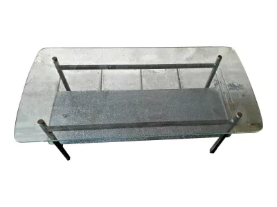 1960er Couchtisch aus schwarzem Metall und Glas von Jacques Hitier.