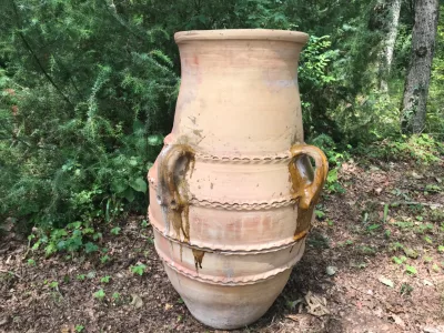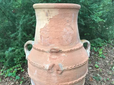 Attraktive Amphore aus Steingut in gutem Allgemeinzustand (eine Seite abgenutzt und ein Griff fehlt).