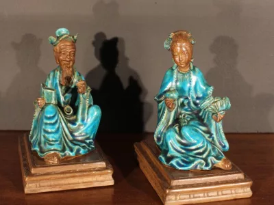 Sehr attraktives Paar chinesischer Statuen aus lackiertem Steingut aus dem 19. Jahrhundert. Sehr guter Zustand.