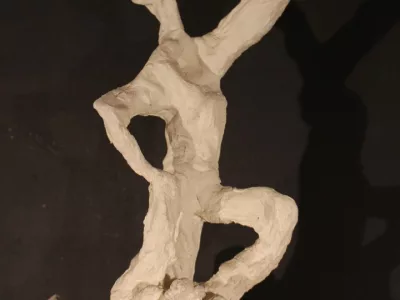 Werkstattskulptur aus Holz und Gips aus den 1970er Jahren, Modell für Bronzeskulptur.