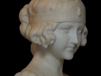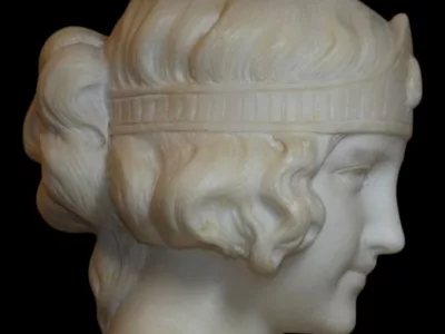 Sehr schöne Marmorbüste einer jungen Frau aus der Jugendstilzeit. Anonym.