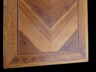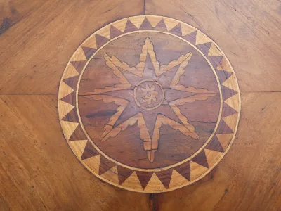 Italienischer Couchtisch mit Kirschholzintarsien, um 1960.