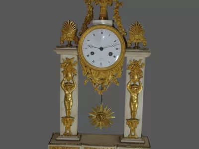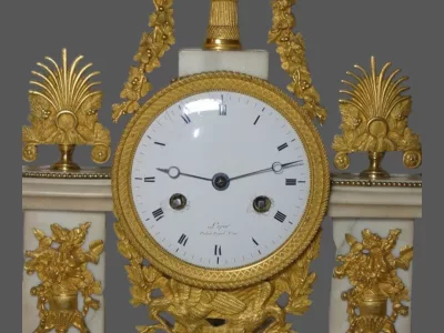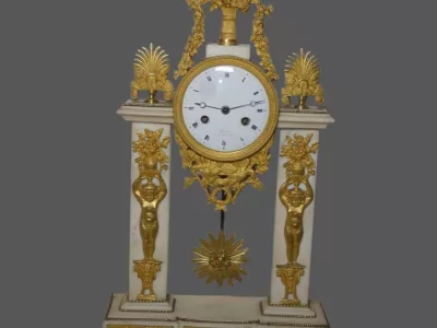 Portikusuhr aus der Empirezeit aus Marmor und vergoldeter Bronze von Jean Louis LOPIN (Schüler von Breguet).