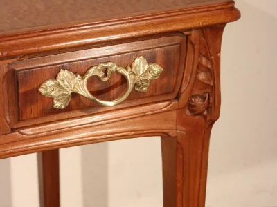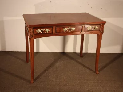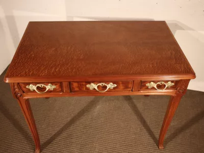 Kleiner Schreibtisch aus Mahagoni mit attraktiven Bronzegriffen, von Louis Majorelle