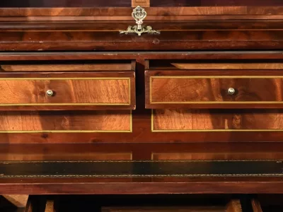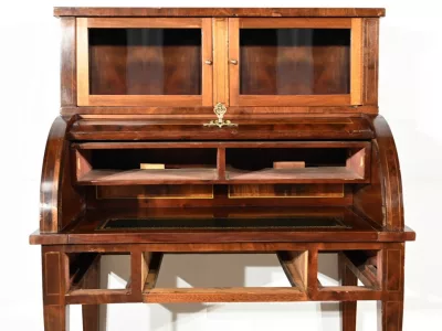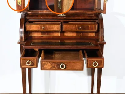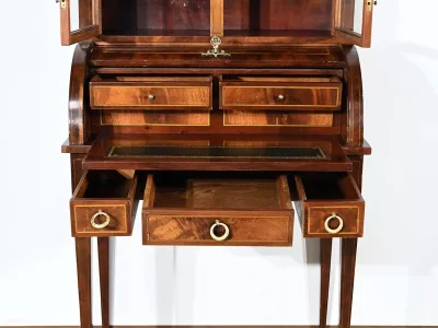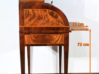 Escritorio estilo Luis XV con tapa cilíndrica "bonheur du jour" en caoba. Interior equipado con cajón extraíble, cuero verde, superficie para escribir. A principios del siglo XX. Excelente condición. Contáctenos para la entrega. Referencia: 070224.2