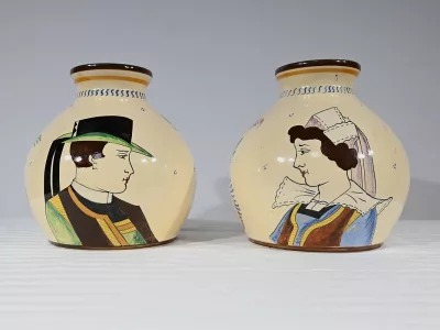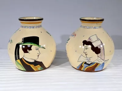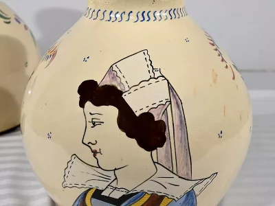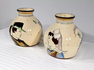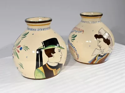 Pareja de jarrones en loza Henriot Quimper. Decorados con motivos bretones. Excelente estado de conservación. Mediados del siglo XX. Contáctenos para su entrega. Referencia: 070324.3