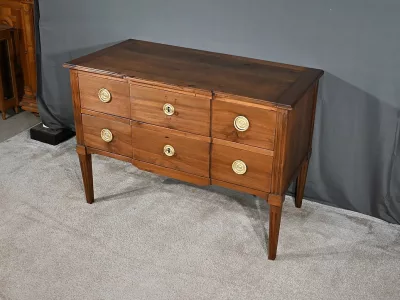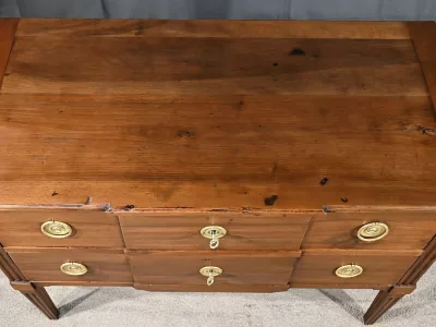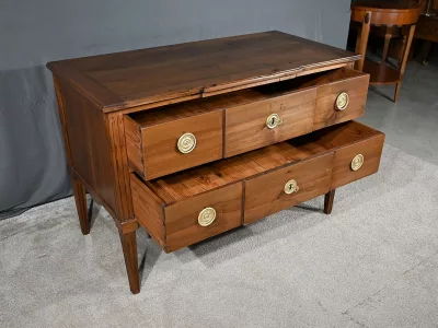 Cómoda de estilo Luis XVI en nogal con cerraduras y llaves originales. Finales del siglo XVIII. Restaurada en nuestro taller y en excelente estado con un acabado de cera simple. Contáctenos para su entrega. Referencia: 080427.4
