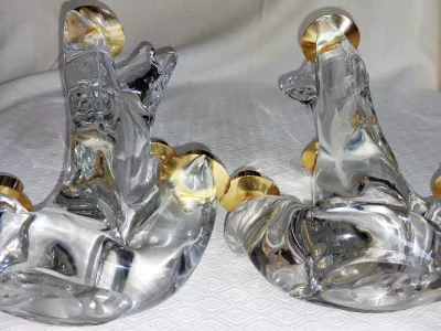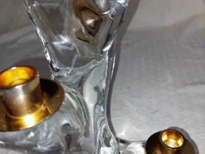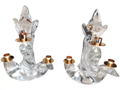 Pareja de candeleros en cristal firmado Schneider (Francia). Circa 1960-70.