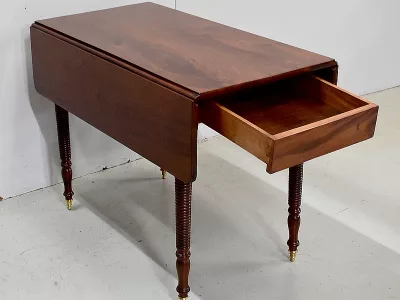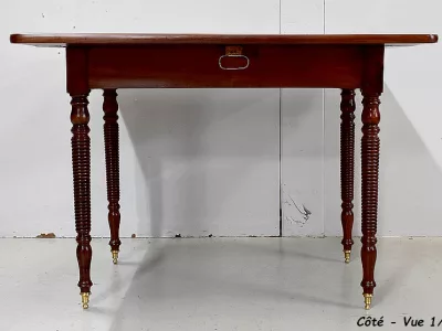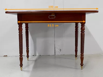 Mesa de gotas de época Louis Philippe en caoba. Cajón de friso. Restaurado en nuestro taller con un simple acabado de cera. Contáctenos para la entrega. Referencia 101120