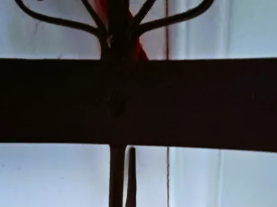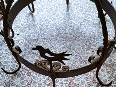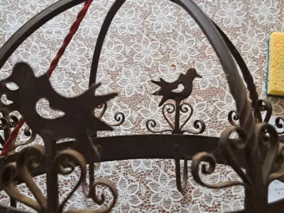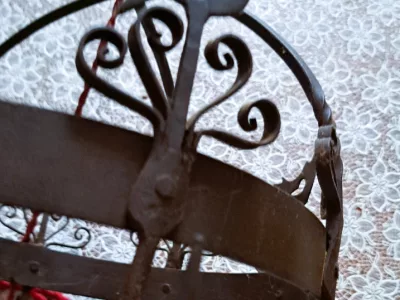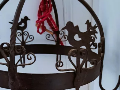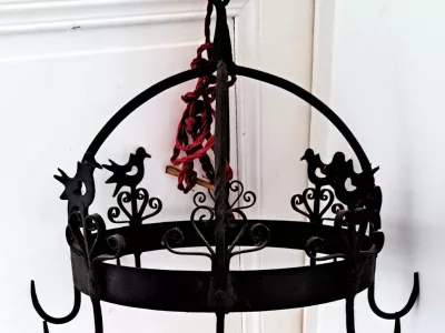 Colgador de hierro forjado para utensilios de cocina o embutidos secos.