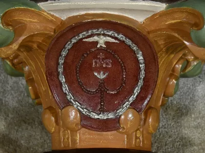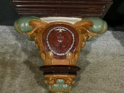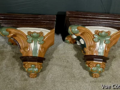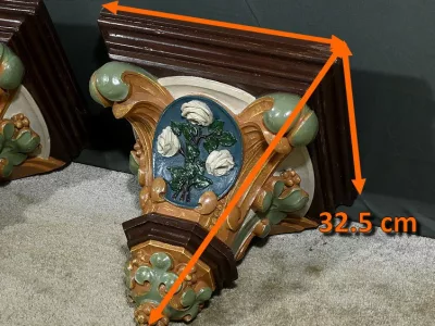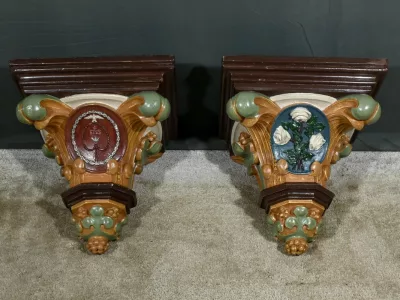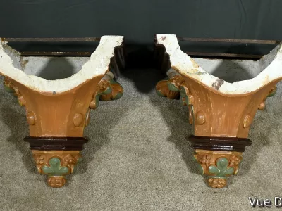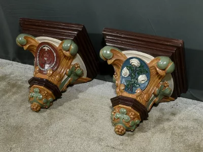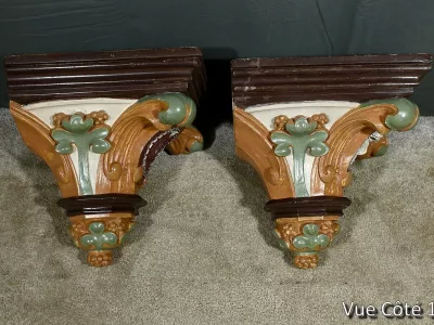 Pareja de repisas de pared de estilo barroco en yeso pintado, destinadas a estatuas de iglesia. Finales del siglo XIX. Muy buen estado de conservación. Contáctenos para su entrega. Referencia: 121224