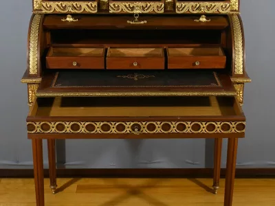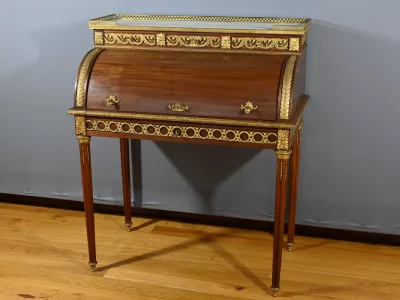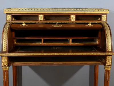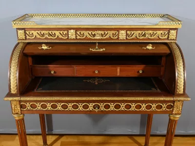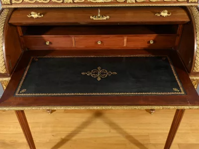• ESCRITORIO CON TAPA CILINDRICA ESTILO LUIS XVI