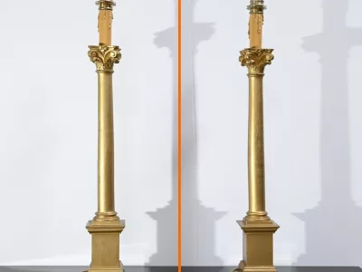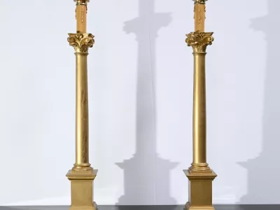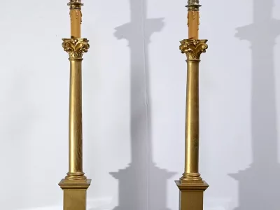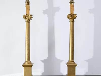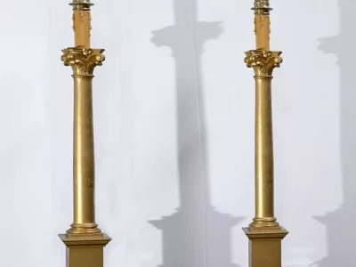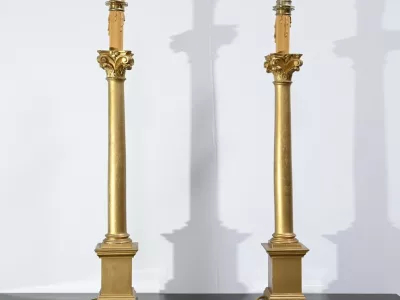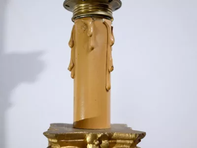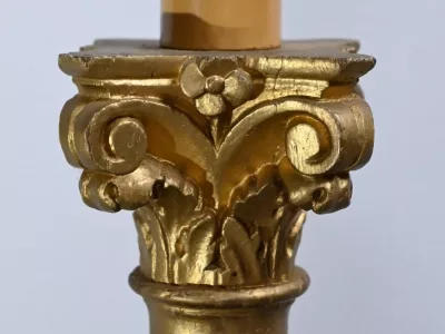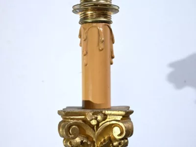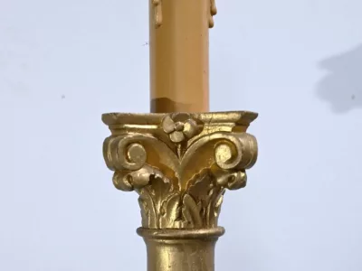 Par de candelabros grandes de estilo Imperio en madera dorada, ahora cableados. Finales del siglo XIX. Dorado un poco desgastado en algunos lugares. Recableado. Contáctenos para la entrega. Referencia: 130923.2