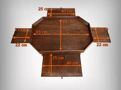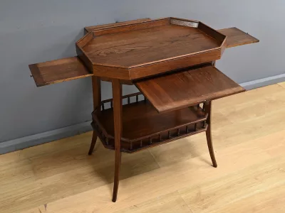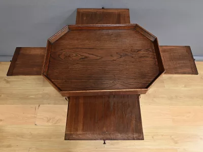 Mesa auxiliar Art Déco de roble con cuatro hojas extraíbles. Hacia 1930. Restaurada en nuestro taller y en excelente estado. Acabado en cera. Contáctenos para su entrega. Referencia: 150925