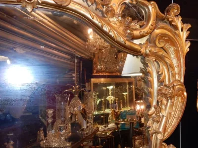 1850′ Louis 15 Style Mirror in Golden Wood Mercury Glass