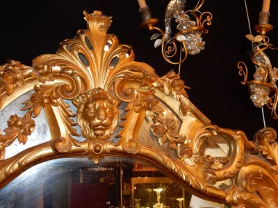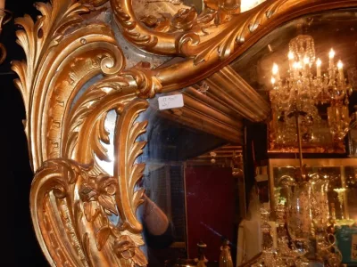 • 1850′ Louis 15 Style Mirror in Golden Wood Mercury Glass