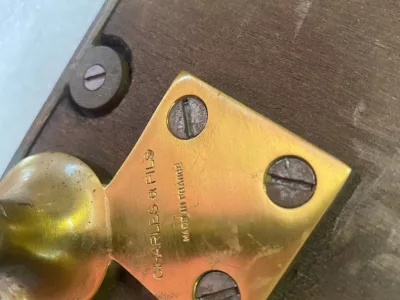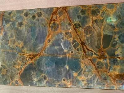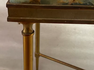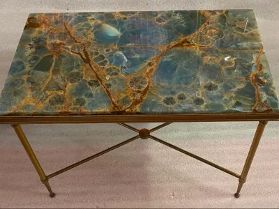 1950/70′ Bronze Sofa End, Marble Or Blue Onyx Top And Rust Maison Charles Signed With Spacer