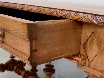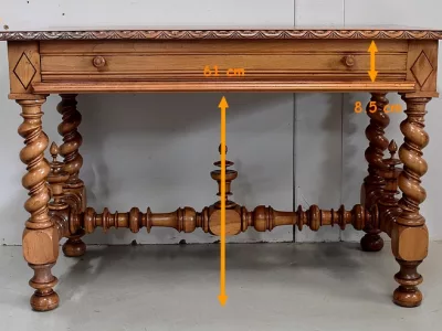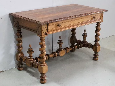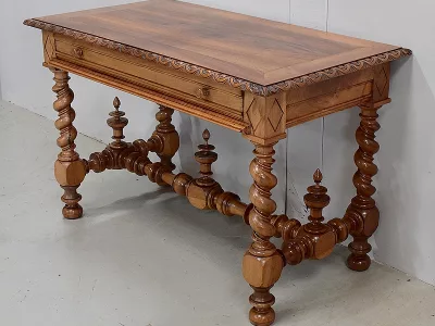 Escritorio de estilo Luis XIII del siglo XIX en nogal, hacia 1880. Restaurado en nuestro taller y en excelentes condiciones con un simple acabado de cera. Referencia: 196 S