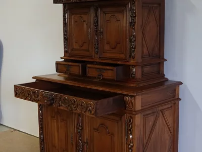 Buffet alto del siglo XIX en nogal tallado. Restaurada en nuestro taller y en excelente estado. Póngase en contacto con nosotros para la entrega. Referencia: 197 S