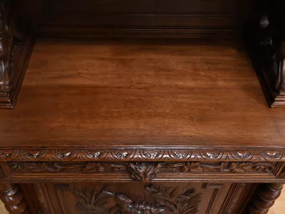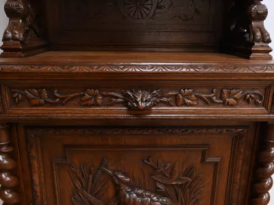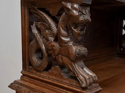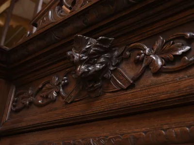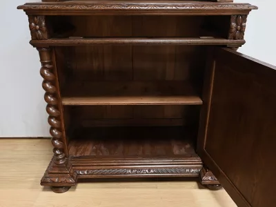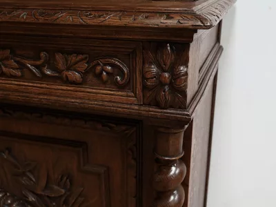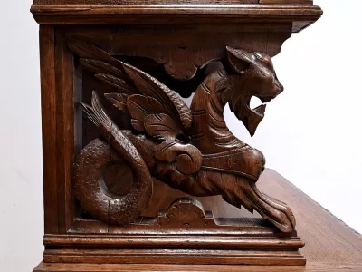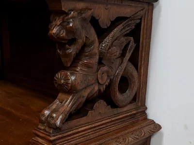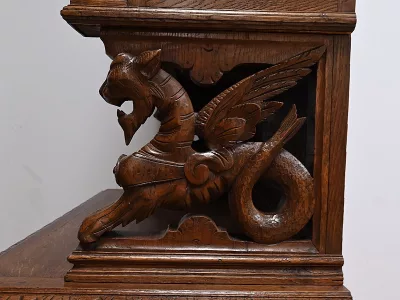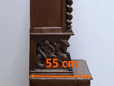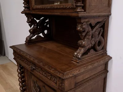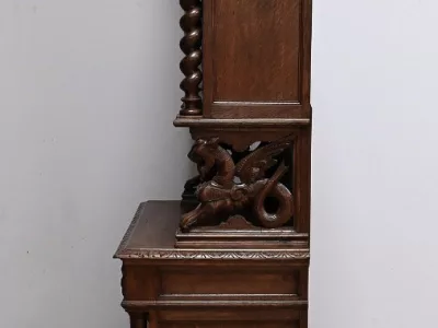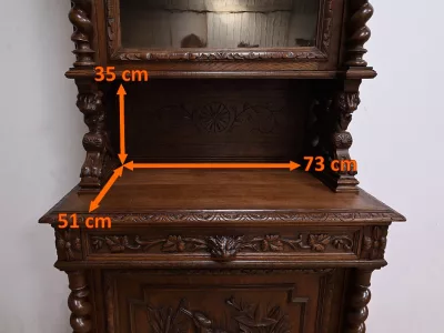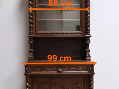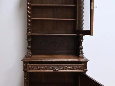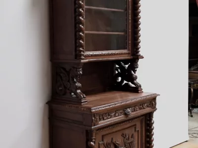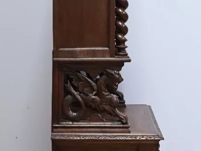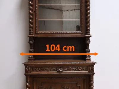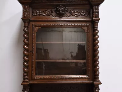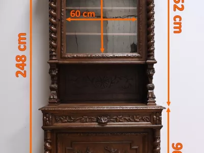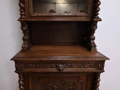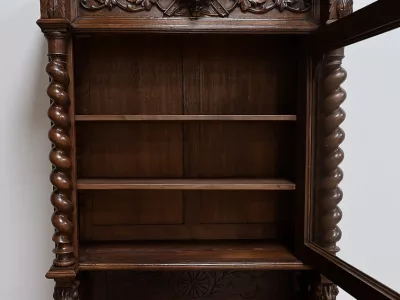 Vitrina de estilo neogótico en roble ricamente tallado. Finales del siglo XIX. Restaurada en nuestro taller y en perfecto estado. Acabado en cera. Consúltenos para su entrega. Referencia: 200224.5