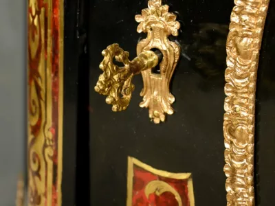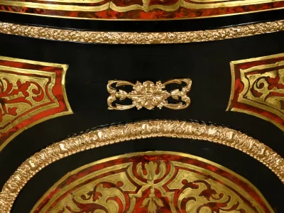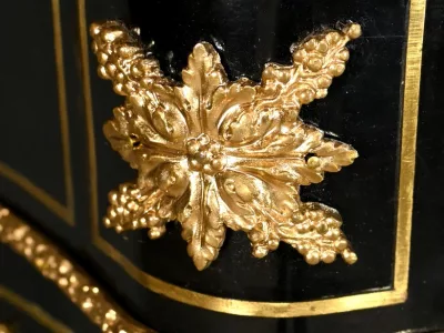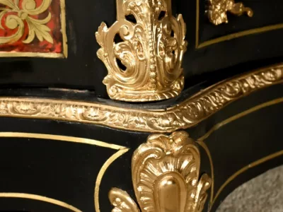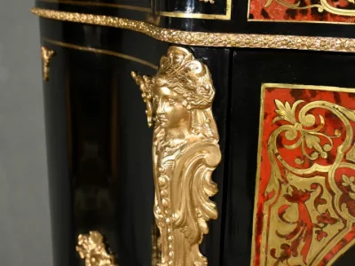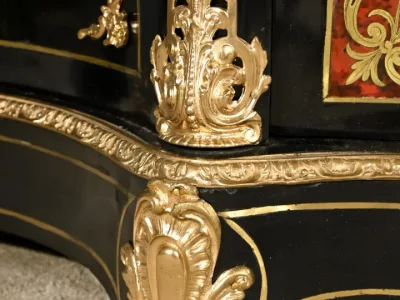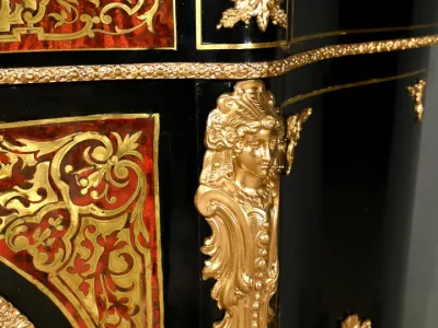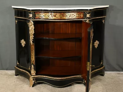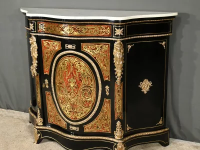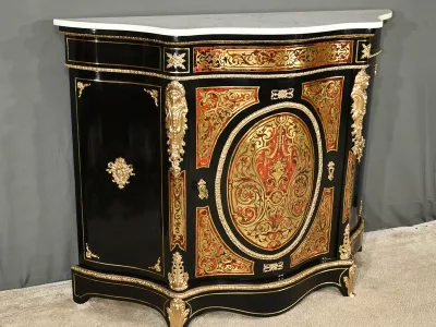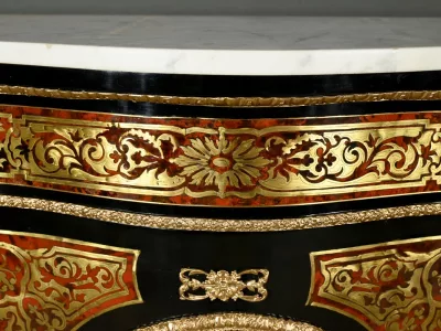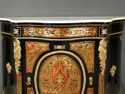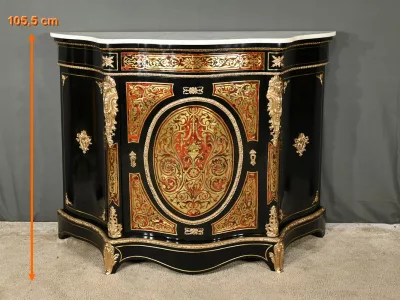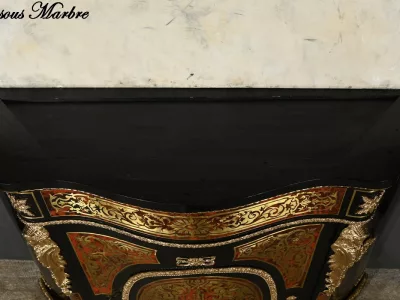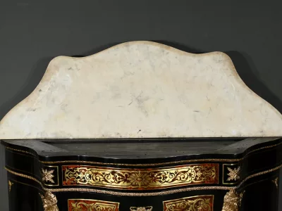 Aparador de época Napoleón III en marquetería Boulle. Interior de caoba. Tapa de mármol. Mediados del siglo XIX. Excelente estado de conservación. Acabado pulido a muñequilla. Referencia: 200924