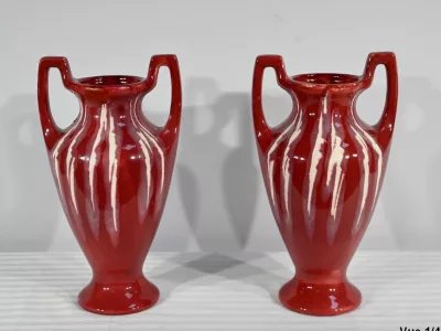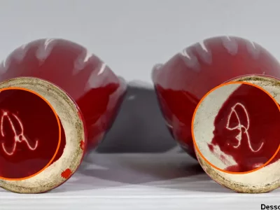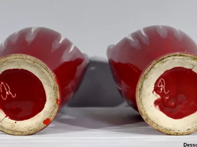 Pareja de jarrones de época Art Nouveau en cerámica vidriada. Firmado "R" en la parte inferior. Circa 1900. Contáctenos para entrega. Referencia: 210323.3