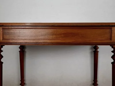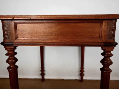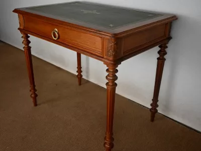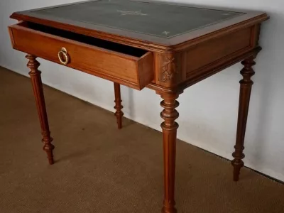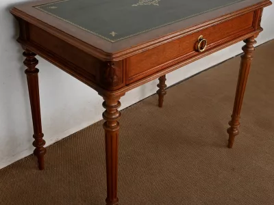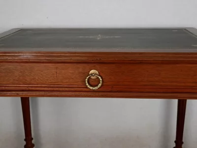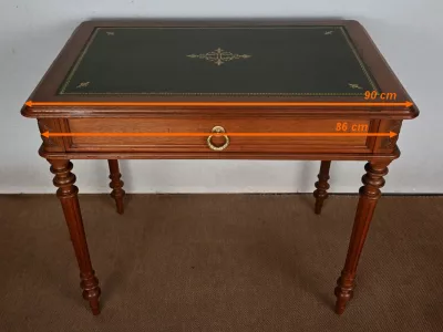 Pequeño escritorio de estilo Luis XVI en caoba con tapa de cuero verde. Gran cajón friso. Circa 1900. Excelente estado, decapado y con un acabado de cera simple. Cuero nuevo. Póngase en contacto con nosotros para la entrega. Referencia: 247U