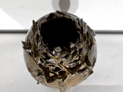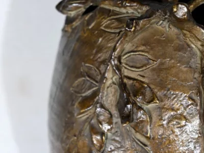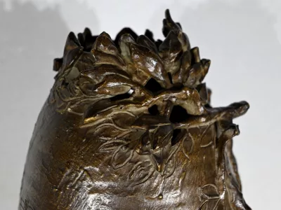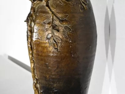 Jarrón de cerámica en forma de árbol firmado "Korina' y con las iniciales "BB" para B. Bertam (alfarero de Luftelberg, Alemania) y "AB". Circa mil novecientos. Excelente estado. Contáctenos para la entrega. Referencia: 279U