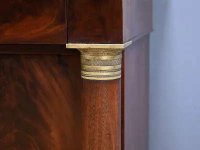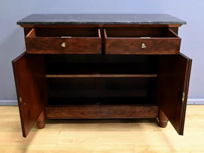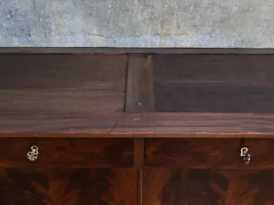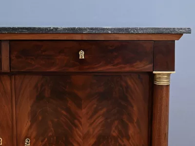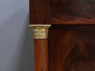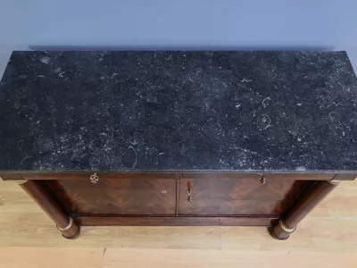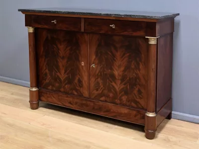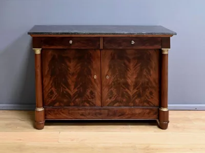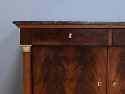 Aparador de caoba de estilo Imperio, de finales del siglo XIX. Restaurado en nuestro taller y en excelente estado. Acabado pulido a muñequilla. Referencia: 295 V