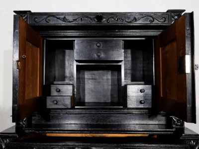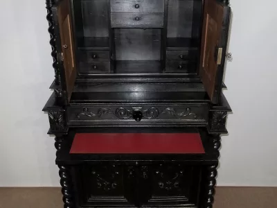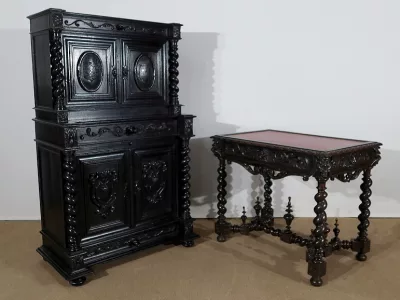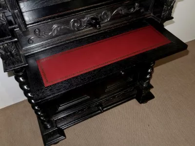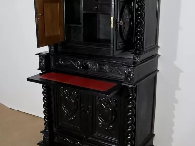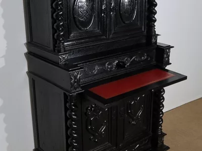 Finales del siglo XIX, estilo Luis XIII, gabinete y escritorio de roble con tapa de cuero rojo. Restaurada en nuestro taller y en perfecto estado con acabado a la cera. Póngase en contacto con nosotros para la entrega. Referencia: 302T