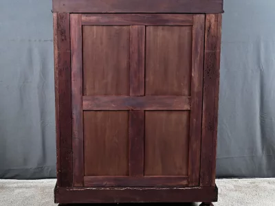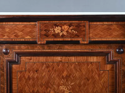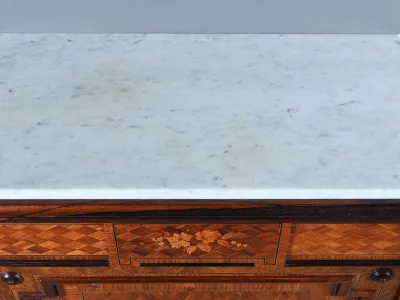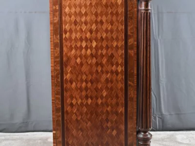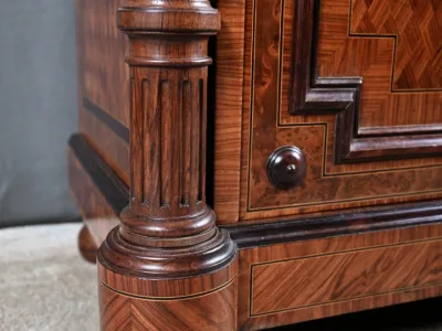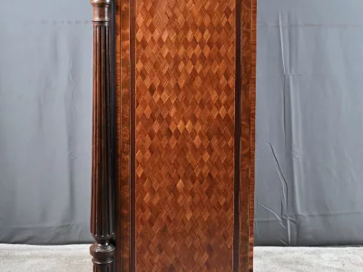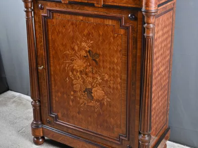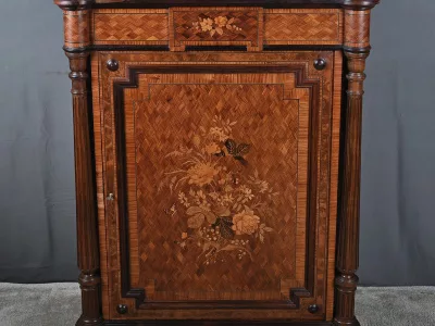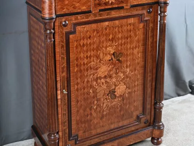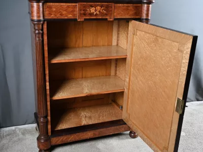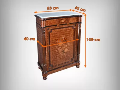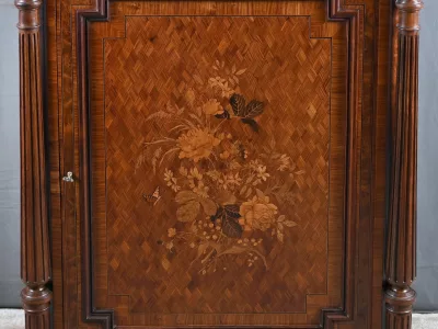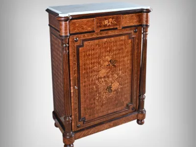 Vitrina de época Napoleón III en marquetería con tapa de mármol blanco. Interior de arce ojo de pájaro con dos estantes ajustables. Restaurada en nuestro taller y en excelente estado. Acabado en cera sobre superficie dura. Contáctenos para su entrega. Referencia: 378 V