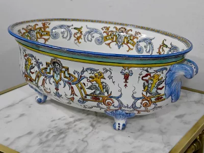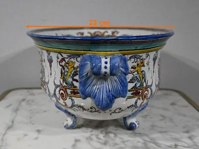 Jardinera de estilo renacentista en loza de Gien pintada a mano. A principios del siglo XX. Muy buen estado, un pie ha sido restaurado. Póngase en contacto con nosotros para la entrega. Referencia: 792U